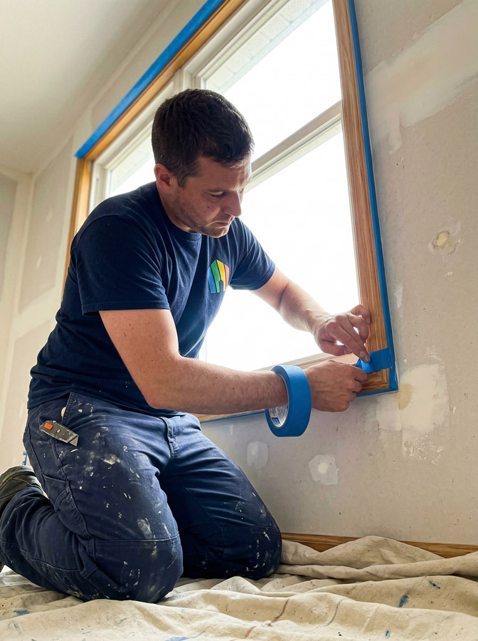 Proper prep is everything. We patch holes, sand rough spots, caulk gaps, clean surfaces, and apply primer where needed. All floors, furniture, and fixtures are protected with drop cloths and tape before any painting begins.