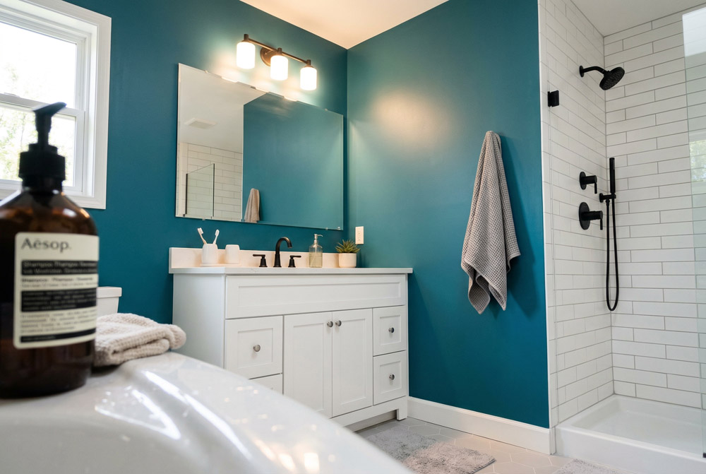 We use premium low-VOC paints from trusted brands like Benjamin Moore and Sherwin-Williams. We select the right finish for each surface — flat for ceilings, eggshell or satin for walls, semi-gloss for trim and high-traffic areas.